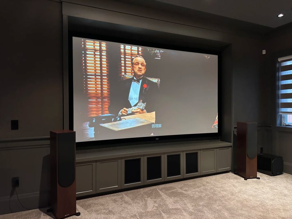 For clients who don’t want to tear open walls or run extensive construction in their homes, this Monitor Audio Silver surround home theater + JVC 4K projector with Control4 smart control is a combination we often recommend — a complete solution that delivers great performance without wasting the budget.