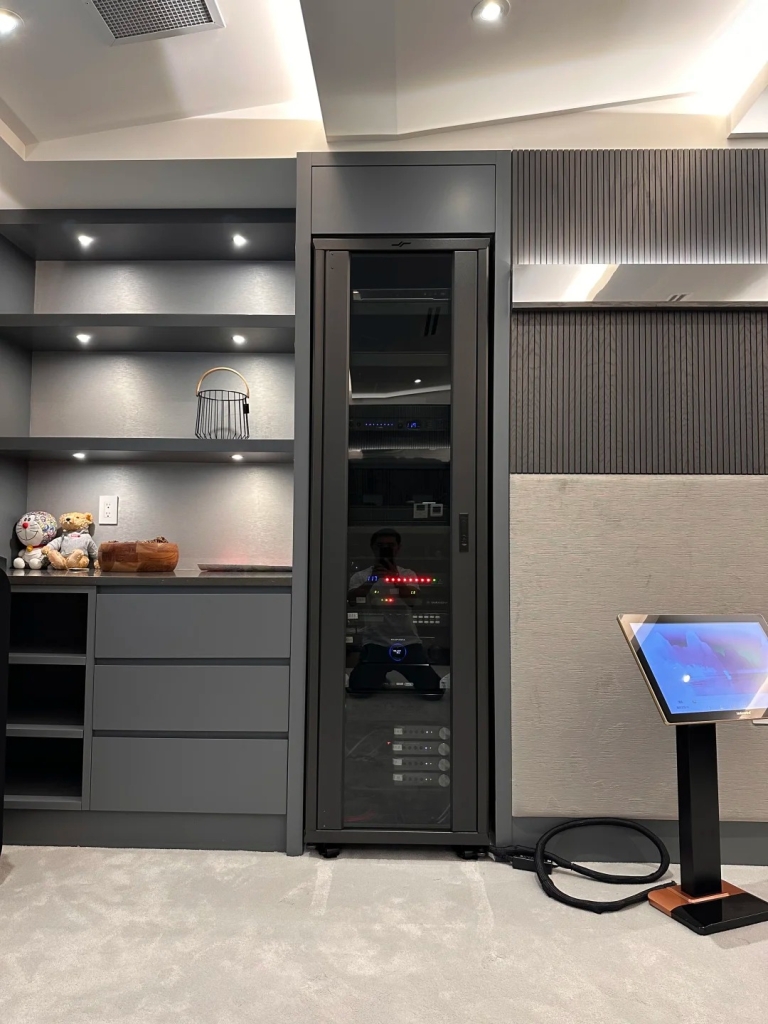 This time, we installed a Control4 smart remote to integrate the home theater and karaoke system into a one-touch experience.