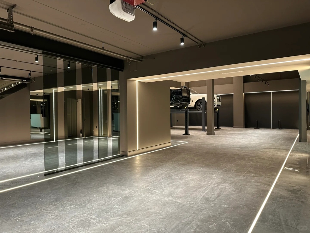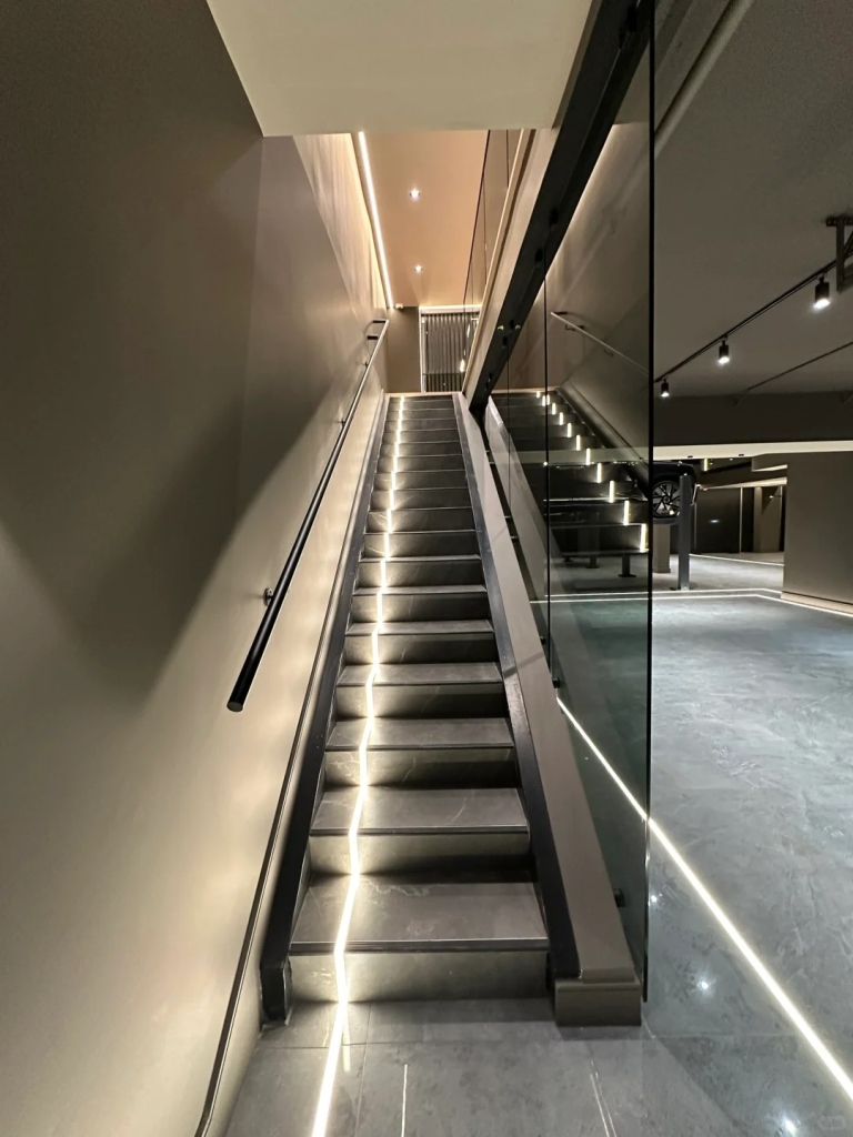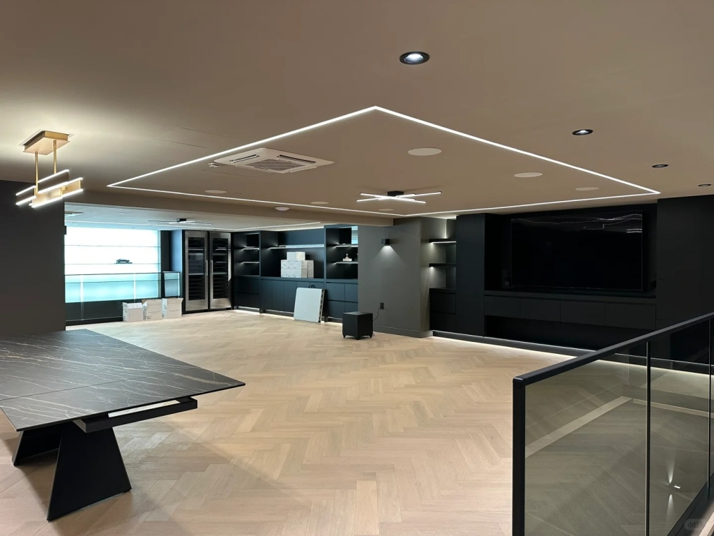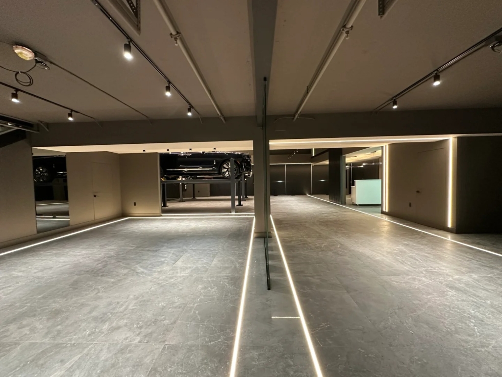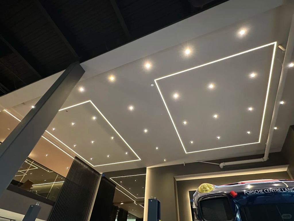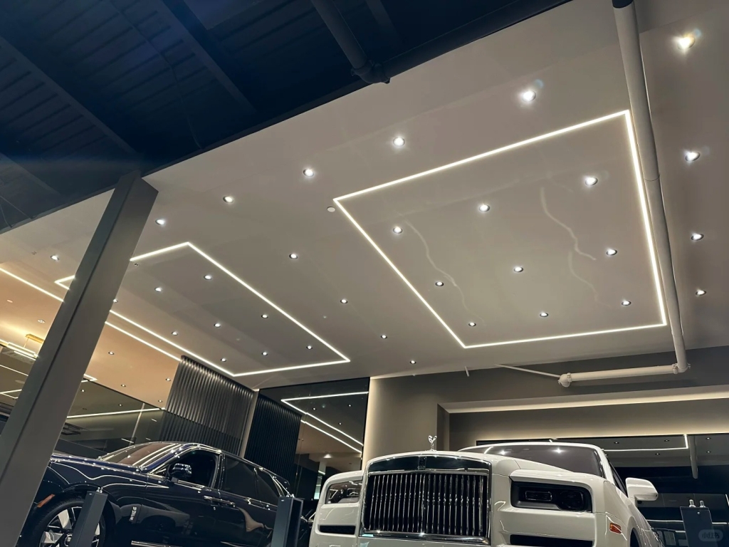 This luxury automobile showroom features a Control4 0–10V intelligent lighting system combined with concealed LED strip lighting to achieve precise brightness control and layered architectural lighting effects. Smart lighting not only enhances the spatial depth of the environment but also allows flexible scene switching based on different needs, delivering a truly premium experience for vehicle owners.
