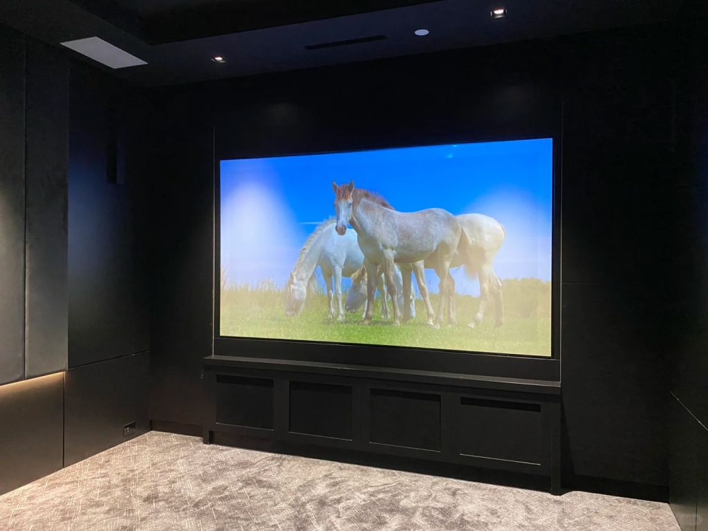 Grandview acoustically transparent screen with ultra-slim 12 mm bezel