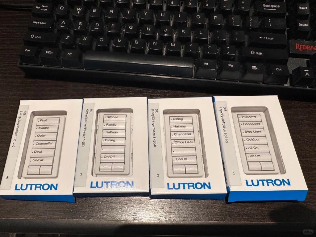 该Lutron路创灯光系统安装2014年,升级Lutron Ra2到Ra3,并为智能场景面板刻字。所有开关均可正常工作。